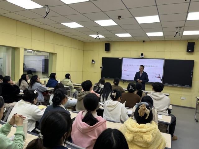 袁明老师以培养学生的核心素养为突破口,围绕大单元教学的概念、大单元教学的设计以及大单元教学的实施等方面为学生系统讲授了大单元教学的设计与实施。师范生们就自己学习中的不解和实习实践中的疑惑向老师们请教,老师们逐一进行解答,现场互动频繁,气氛活跃。