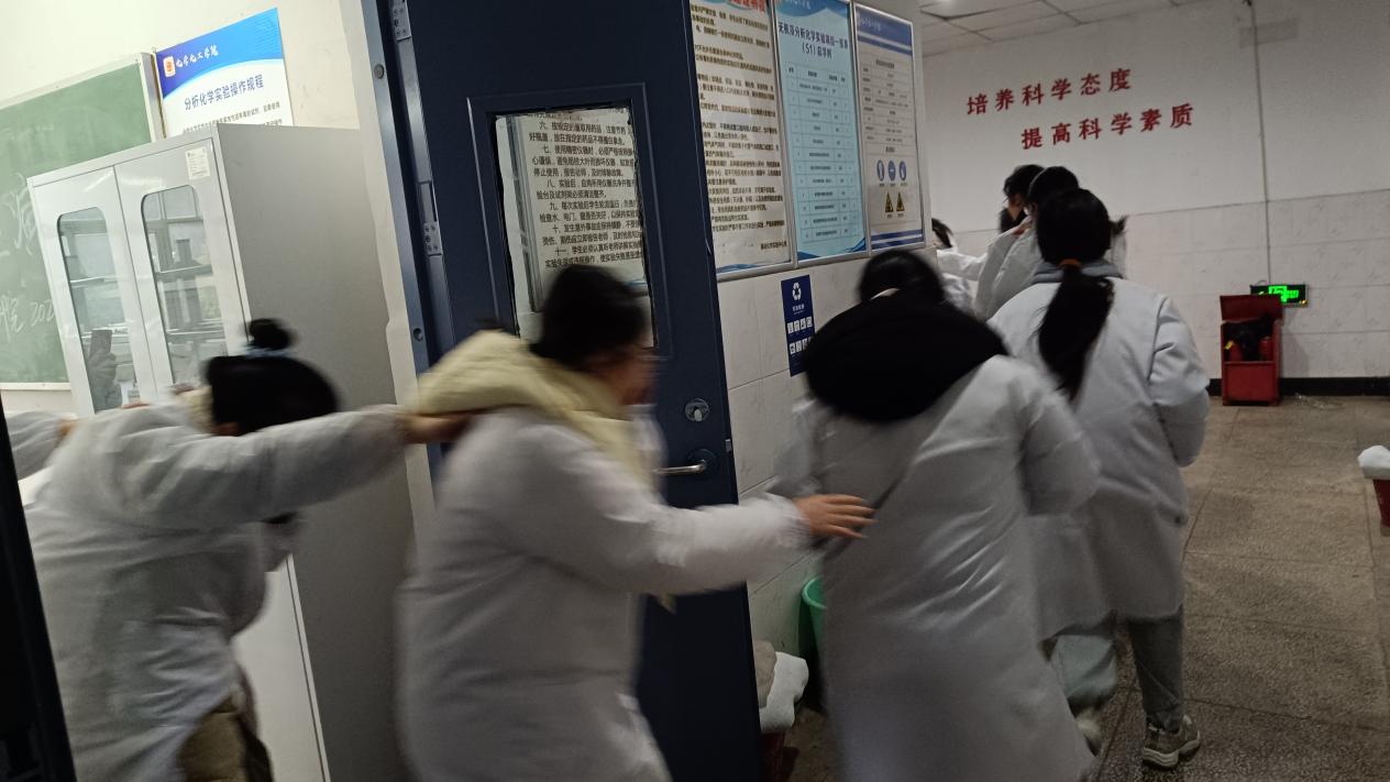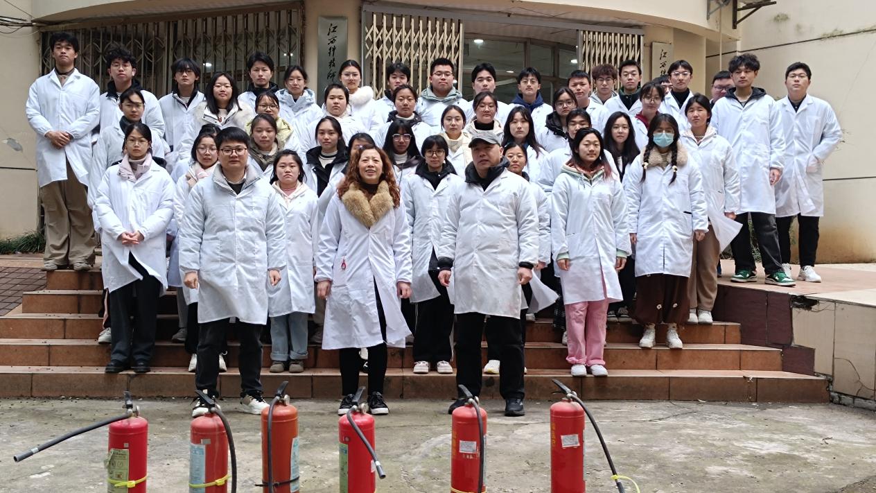 此次演练的重心是实验室遇火情时的消防逃生。林聪老师向同学们详细介绍了实验室内常见的火灾隐患,如易燃化学品的储存、实验操作中的注意事项以及发生火灾时的应急措施,并且列举实验室着火引发的重大事故的相关事例,让学生们进一步了解到实验室安全的重要性。