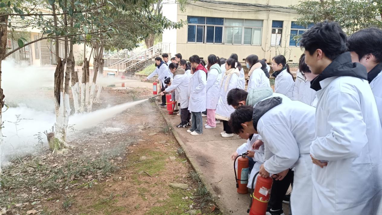在演练中,同学们学习了如何正确使用灭火器、紧急逃生通道的位置和使用方法等关键知识。通过模拟火灾场景的演练,师生们在紧张而有序的氛围中学会了如何迅速、有效地疏散人员、扑灭火灾,保障自身和他人的生命财产安全。随后,徐建国老师对灭火器的种类和使用场景进行了详细讲解,指导同学们实际操作灭火器。同学们在老师的带领下,分组进行模拟灭火,确保每个人都能熟练掌握灭火器的使用方法。