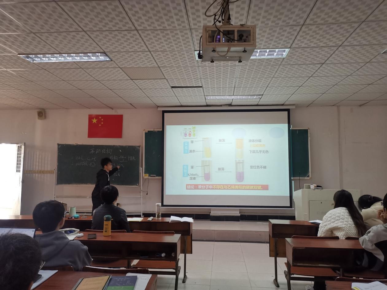本次对抗赛中,2021级唐琪、易辉环、陈忠生、李洋同学围绕中职化学教材的节选章节进行模拟教学。各位选手教学思路清晰,教学过程设计合理,语言表达准确精炼,教学方法独特新颖,他们以饱满的精神、流畅的语言、丰富多彩的教学互动情节以及端庄大方的教学仪态,营造了生动的课堂氛围。教学结束后,孔芳芳老师和王静岚老师进行了现场点评,肯定了学生在比赛中的精彩表现,客观分析了比赛中出现的问题,并提出了改进意见;高倩学姐和刘乐学姐分别结合中职教学经验,抓住教学细节,对选手的教学过程进行了有针对性评价;在场观众以及选手,积极发言,查漏补缺,不断提高自身的教学技能。