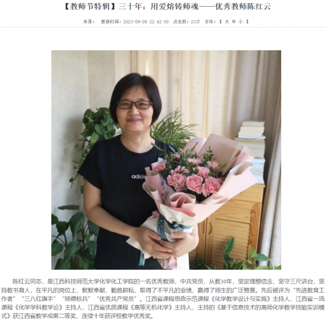 开展先进宣传活动。依托学院网站和微信公众号等平台展示退休教师、优秀在岗教师和优秀校友代表事迹,充分展示先进典型爱岗奉献、积极进取的良好风貌,弘扬主旋律,讲好师德故事,教育引导广大教师崇德修身、潜心教书育人。