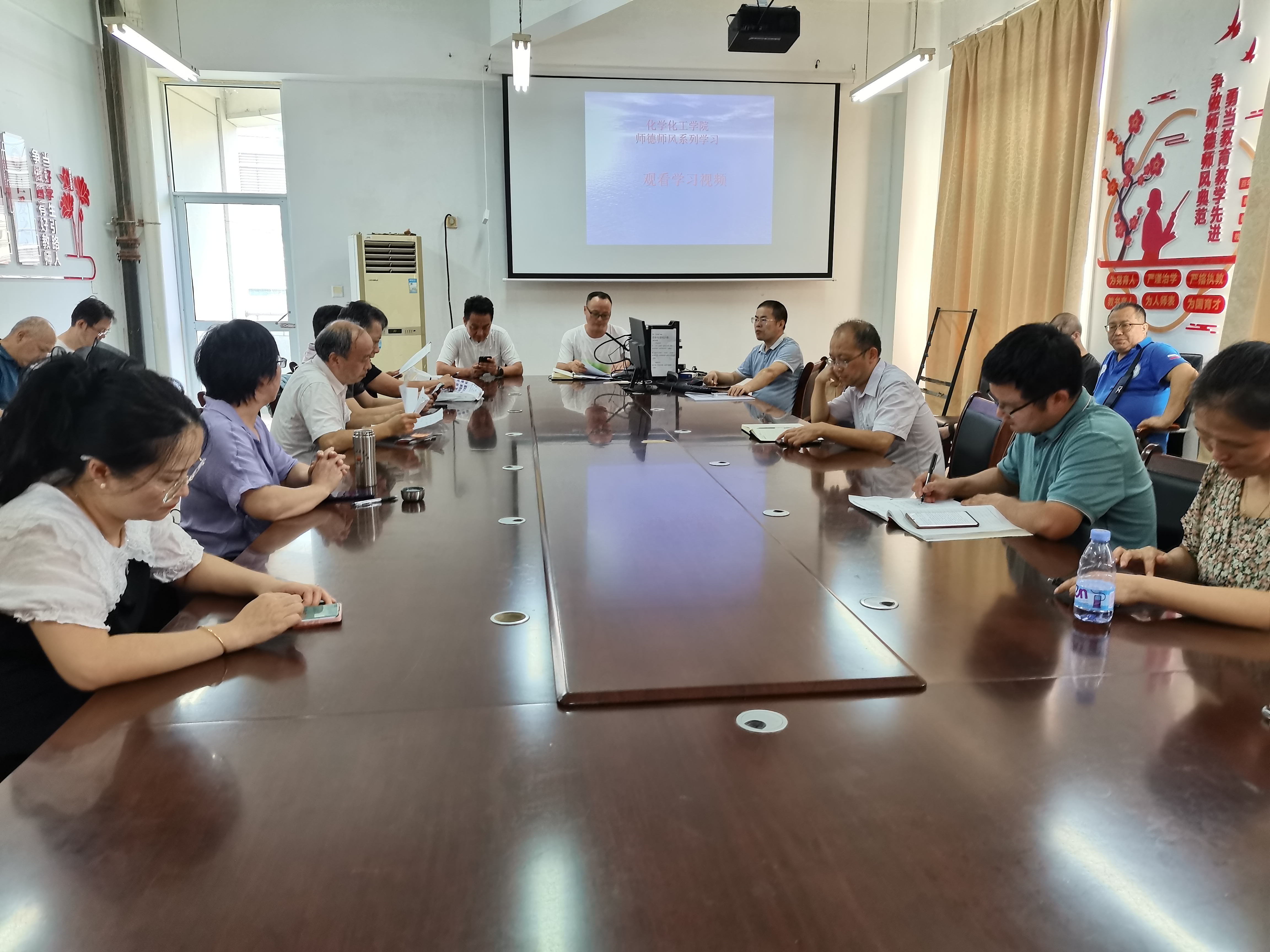 学院党委副书记蔡文强领学了以下内容:1.习近平主持召开新时代推动东北全面振兴座谈会强调:牢牢把握东北的重要使命 奋力谱写东北全面振兴新篇章;2.《求是》杂志发表习近平总书记重要文章《扎实推动教育强国建设》;3.《关于培育和践行社会主义核心价值观的意见》;4.《关于加强网络文明建设的意见》。会议组织全体教职工集中观看了反邪教宣传视频和师德师风系列学习视频。