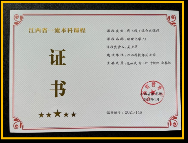 1.严谨治学,努力提升教学水平。六年来,吴亚芊老师在每年学生对老师的评分中均名列前茅,连续5年获“教学优秀奖”。吴亚芊老师教学能力突出,在省/校教学技能竞赛中获奖4次(省级二等奖1项,校级一等奖2项,校级三等奖1项)。吴老师除了担任大量专业课程的授课任务外(年均课时量超700/学年),还长期担任我院考研辅导公选课《中级物理化学》的主讲教师,每一年吴老师都得牺牲自己大量的休息时间来为同学们答疑辅导(辅导学生超过200人),在吴亚芊老师尽心尽责、孜孜不倦的辅导下,学院考研录取率以及考研学校层次均显著提高。不少学生还考入985高校,如2016级高分子材料专业的丁洋、周继勇同学,在吴老师的辅导下考取华中科技大学和中山大学,其中,丁洋同学的《物理化学》考研成绩分别达144分(满分150分)。课程建设以及教学研究方面,目前主持江西省一流金课《物理化学》、《物理化学实验》2项,主持省基础教育改革研究项目1项,校教改课题3项,完成2019年校教改重点课题1项,主持2019年、2020校级在线精品课程《物理化学》、《物理化学实验》,主持2021年校级课程思政示范课程《物理化学》。