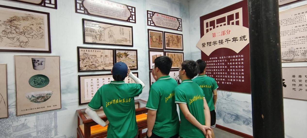 实践队员参观了白鹿洞书院院门楼、先贤书院、紫阳书院、白鹿书院和延宾馆等建筑群落。书院的摩崖石刻、名人匾额、楹联和诗词歌赋等让实践队员实地感悟了其深厚的书院文化及其发展历程。