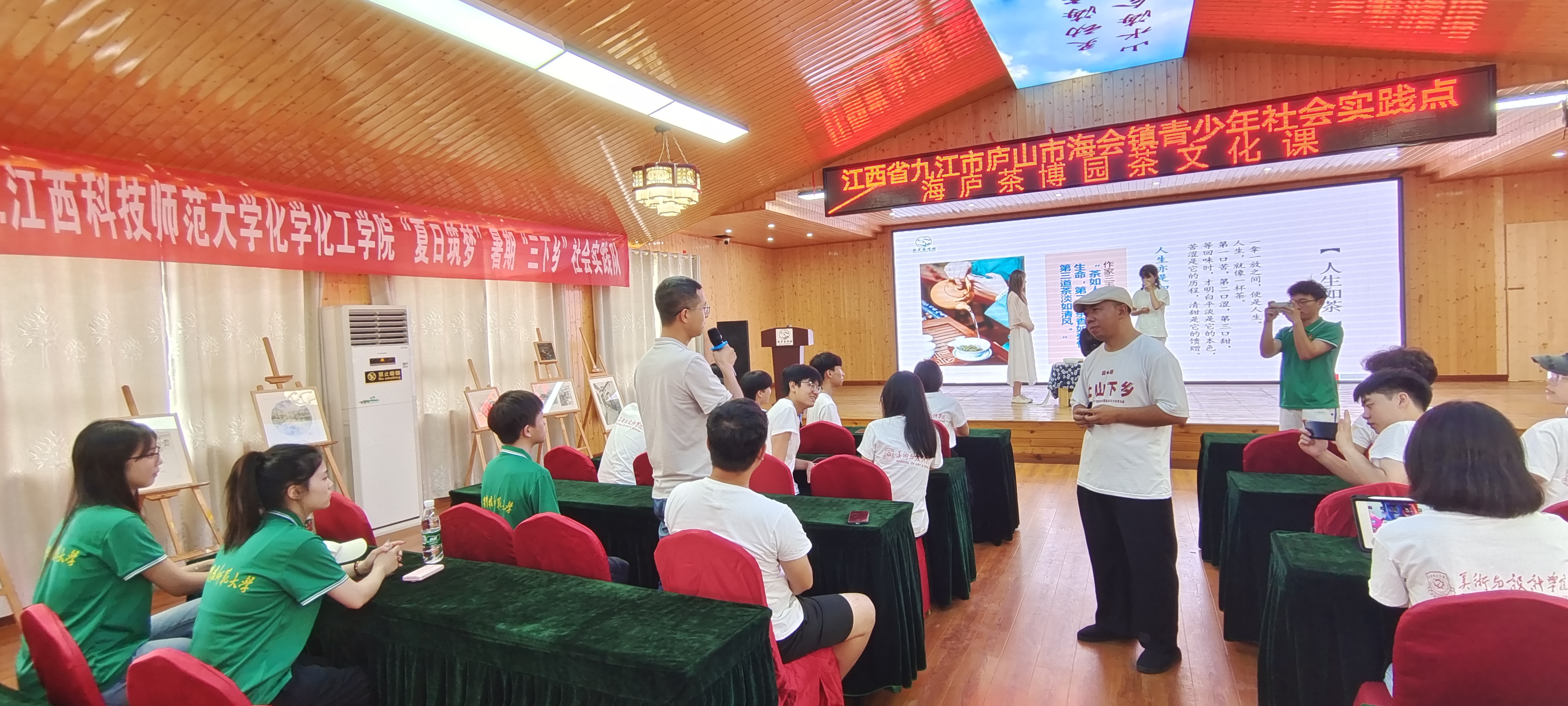 当日上午,实践队员在茶博园开展茶文化研学,深入了解了茶叶的分类、主要成分、养生保健和冲泡品饮等方面知识并进行实操,还围绕茶文化、助农和乡村振兴等课题进行交流。