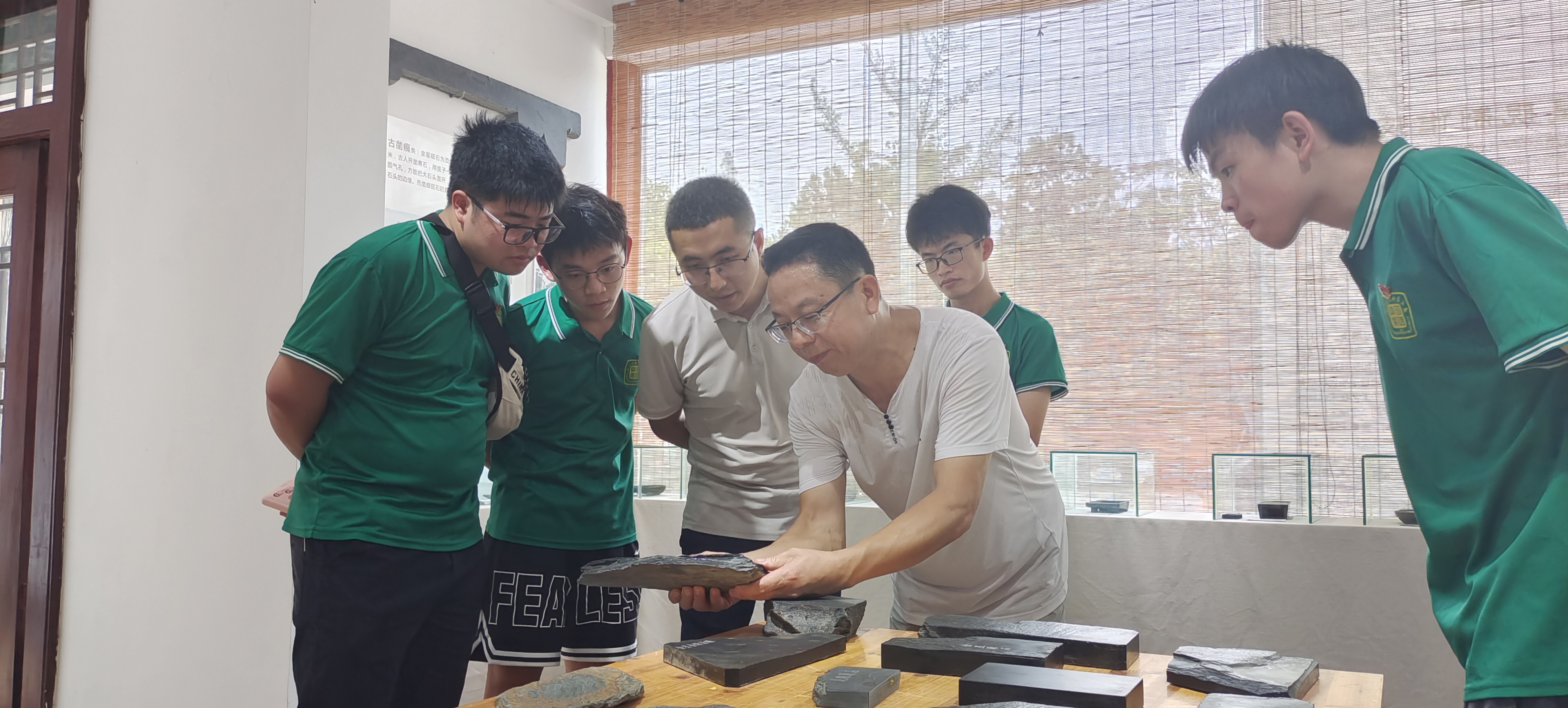 当日下午,实践队走进庐山金星砚文化博物馆,继续探寻非物质文化遗产。实践队员在工作人员的带领下,了解了金星砚在采石、选材、艺术构思和雕刻制作等方面的知识。据悉,金星砚因石质坚韧,温润莹洁,色彩丰富和纹理多变得到古今文人的青睐,2006年金星砚制作技艺被列入国家级非物质文化遗产名录。