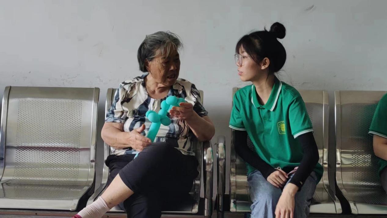 一位76岁的老奶奶,身体十分硬朗,她拉着队员们的手,讲述着自己的辛劳岁月,她说:“我感觉现在生活非常幸福,生活物资和医疗费用全部由政府提供,还享受单人单间的房间居住,真的感谢党、感谢国家、感谢政府”。谈笑声中,爷爷奶奶们表示希望社会能够更多的关注老人群体,为他们带去温暖,同时也亲切地鼓励队员们要好好学习、把握当下。