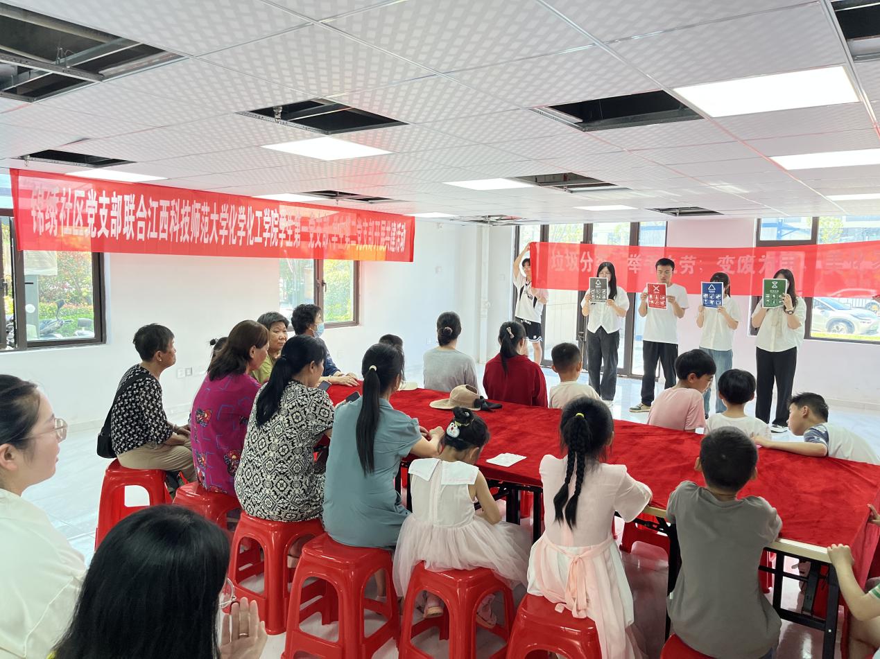 本次读书班学习形式多样,大家集中学习了《中国共产党章程》、《习近平新时代中国特色社会主义思想学习纲要》、《习近平著作选读》和《习近平新时代中国特色社会主义思想专题摘编》等内容;观看了红色革命历史题材电影《血战湘江》,重温革命先烈不畏牺牲、浴血奋战的光辉历史;参观了八一起义纪念馆,追忆红色历史,接受革命传统教育洗礼;深入共建合作单位锦绣社区开展志愿服务活动,通过朗诵《月光下的中国》,带领社区孩子们共读红色诗歌、感受红色文化、厚植爱国情怀,向小朋友宣传垃圾分类知识、增强节约资源和保护环境的意识。