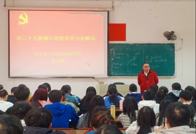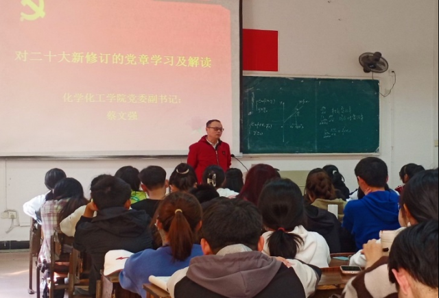 为深入学习贯彻党的二十大精神,进一步提升尊崇党章、严守党规、遵守党纪的自觉意识。WilliamHill威廉希尔官网于3月14日下午3点在教学楼9003举办了“对党的二十大修改的新党章的解读”主题党课。本次党课由院党委副书记蔡文强主讲,学院第28期党委党校新吸收、确认的发展对象、入党积极分子共同参加了此次党委党校培训班讲座。