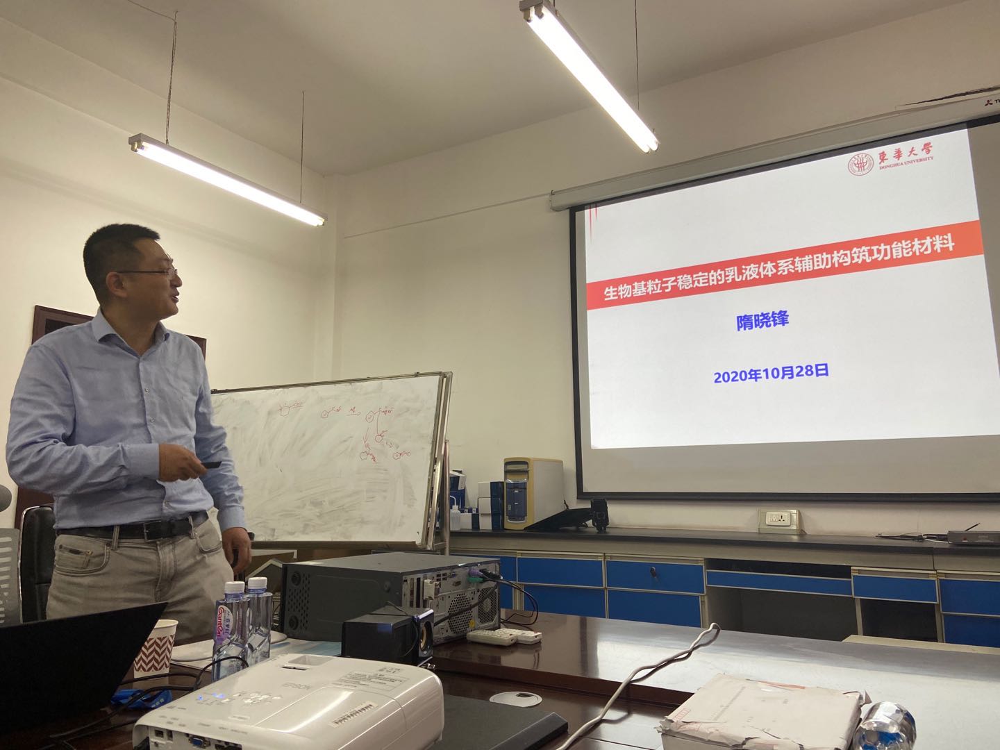 隋晓峰教授本场讲座主题为“生物基粒子稳定的乳液体系辅助构筑功能材料”;隋教授从自己的科研方向出发,详细讲解了生物基粒子稳定的皮克林乳液的研究背景、乳化调控、功能胶囊的制备及相关复合材料的作用,最后讲解了关于乳液凝胶的相关内容。