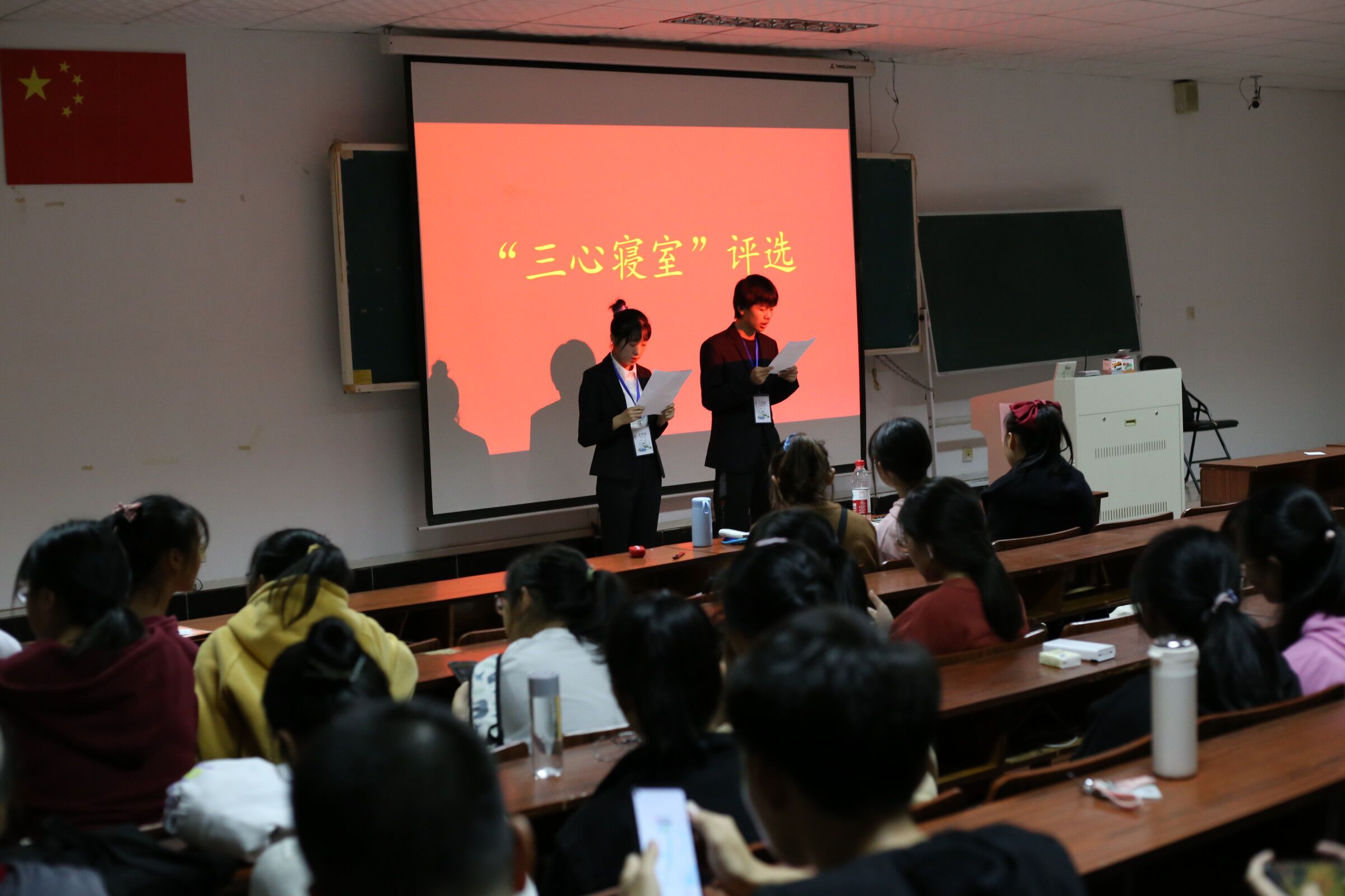 为丰富我院大学生寝室文化生活,营造温馨和谐的寝室环境与校园文化氛围。11月14日晚,我院学工办及团委学生会在9栋教学楼9311举办了“三心”寝室评选大赛,我院学生积极参与。