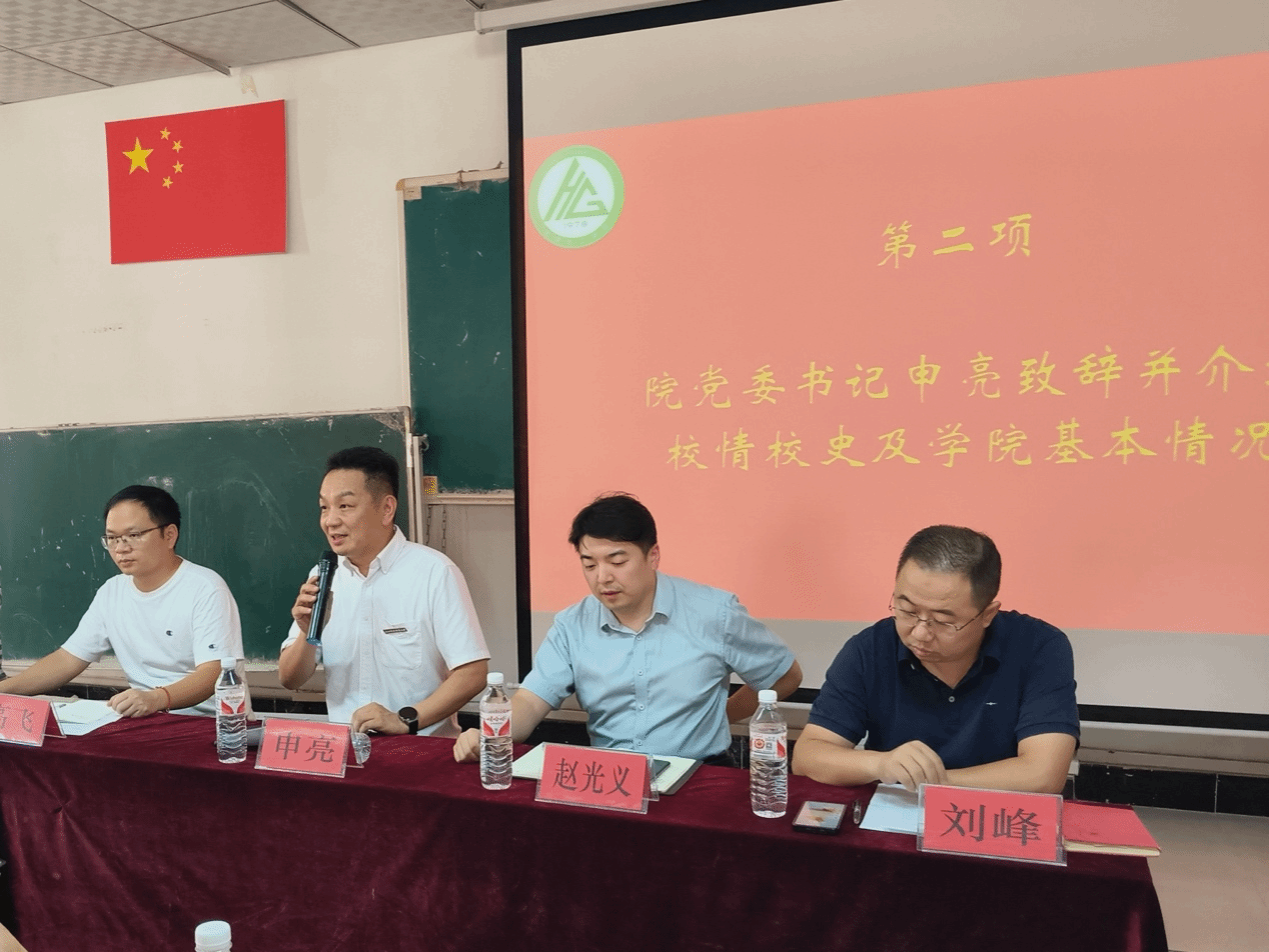 随后,学院党委书记申亮致辞。他代表学院对2025级新生的到来表示诚挚欢迎,并寄语同学们珍惜大学时光,树立远大理想,积极面对挑战,努力成长为具有创新精神和社会责任感的高素质人才。申亮还精炼地介绍了学校和学院办学历史、优良传统以及学院在专业学科建设、师资队伍发展、科研平台建设等方面的情况,增强了新生对院校的认同感和归属感。