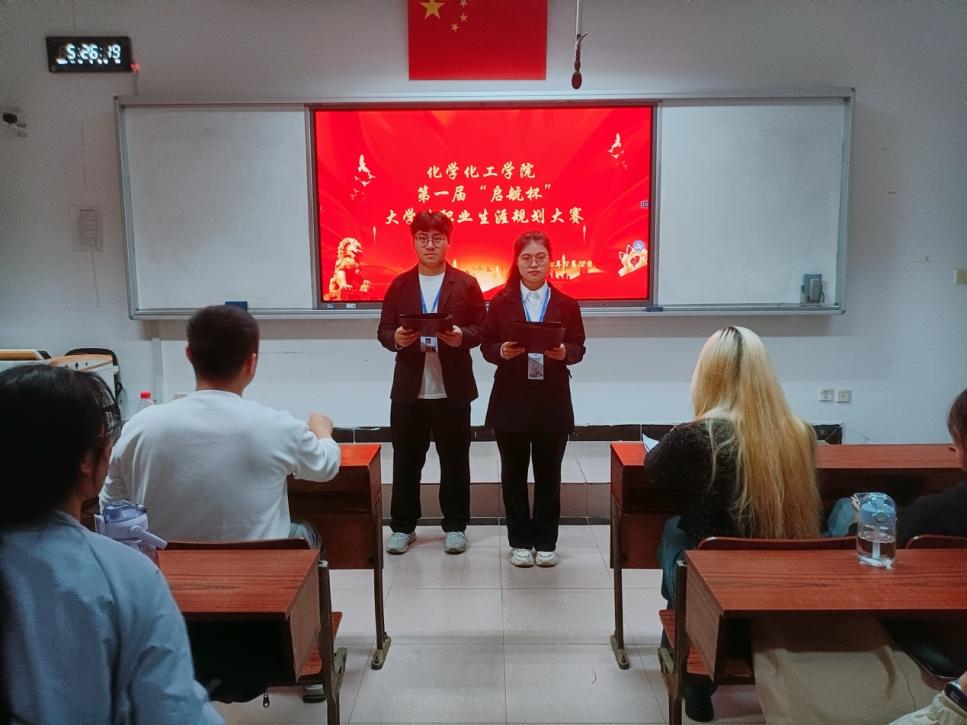 为了提高学生的求职实战能力,引导学生设立合理的职业目标,提升职业目标的达成度,增强学生综合素质和能力,WilliamHill威廉希尔官网于11月12日下午16时在9112教室举办第一届“启航杯”职业生涯规划大赛,学工办负责人车欣敏老师、研究生学工办负责人蔡超老师、学工办就业专干章琳老师出席担任评委。