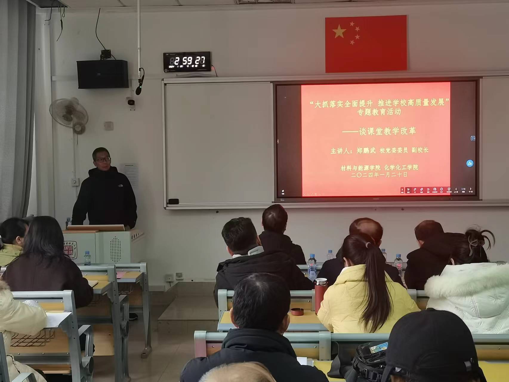 1月20日下午,WilliamHill威廉希尔官网联合材料与能源学院在红角洲校区3203开展“大抓落实全面提升 推进学校高质量发展”专题教育活动,校党委委员、副校长郑鹏武莅临现场指导专题教育工作。