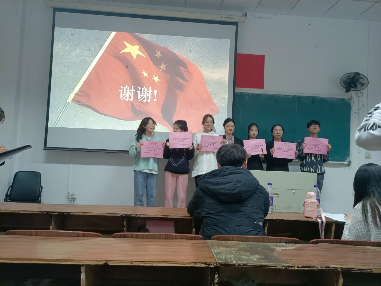 在本次比赛中,选手们有的幽默诙谐,有的成熟稳重,有的激情昂扬,赢得观众们接连不断的喝彩。经过评委打分,20化学师范一班查建程,丁忠晨和徐文远荣获一等奖,20化师二班周舒桐,张婷,钟义欢和21高分子材料与工程一班刘弘昊获得二等奖,20化师一班李文佳,郭芳,刘爱竹,20涂料工程一班李莹嘉,曹霖晔,傅嘉雯和21应用化学二班李洋获得了三等奖,21应用化学潘雅丽,官苏琳,肖皓丹,21应用化学二班陈琪和21高分子材料与工程一班赖敏杰获得优秀奖。最后,比赛在热烈的颁奖仪式后落下帷幕。