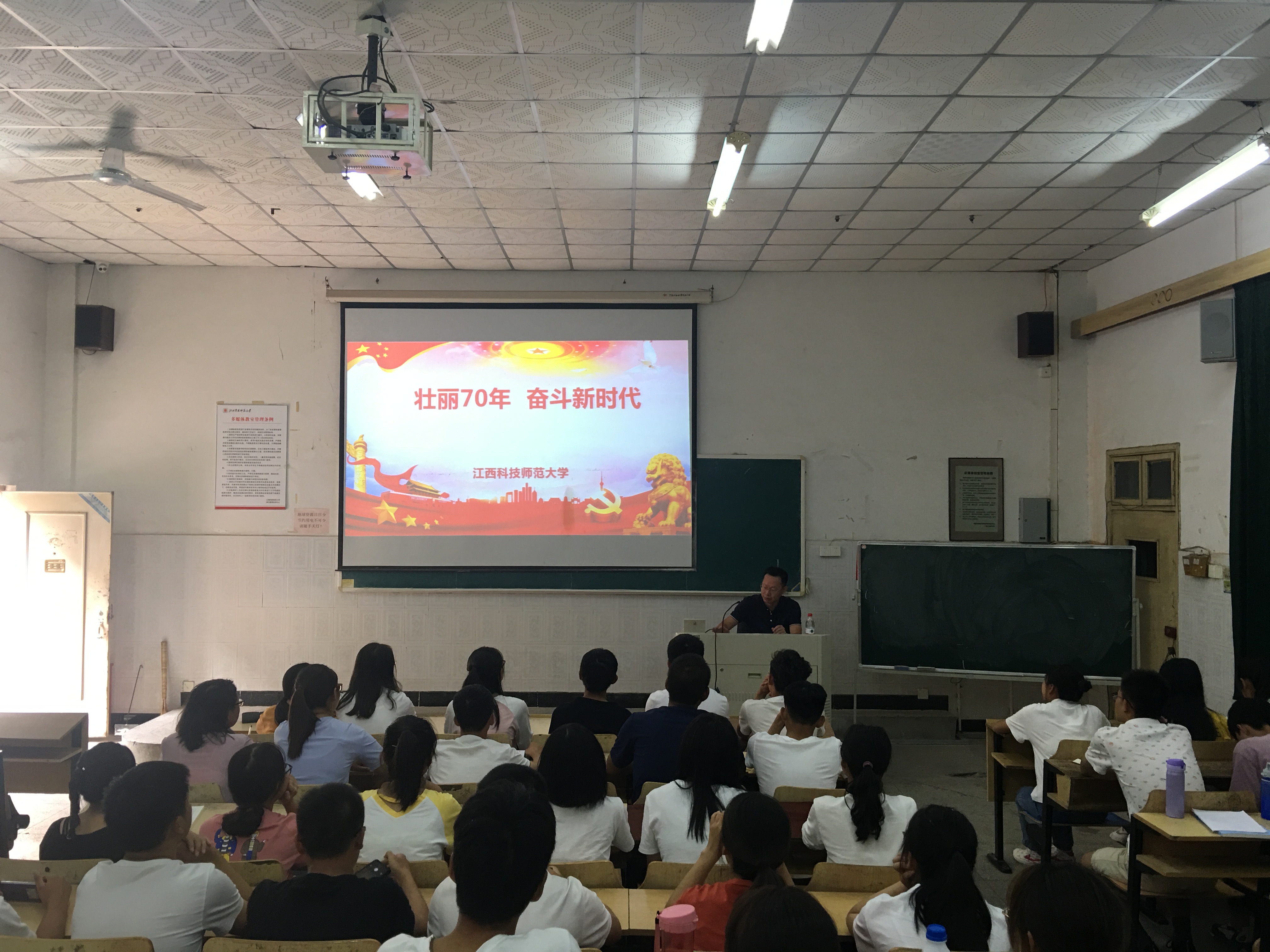 为深入学习宣传贯彻习近平新时代中国特色社会主义思想,庆祝中华人民共和国成立70周年;在全党深入推进“不忘初心、牢记使命”主题教育之际,我院党委书记鲁辉和院长申亮分别于9月26、27日上午在学术报告厅511教室和九栋教学楼9104教室,给新生班级开展了一堂“壮丽七十年、奋斗新时代”的专题党课。