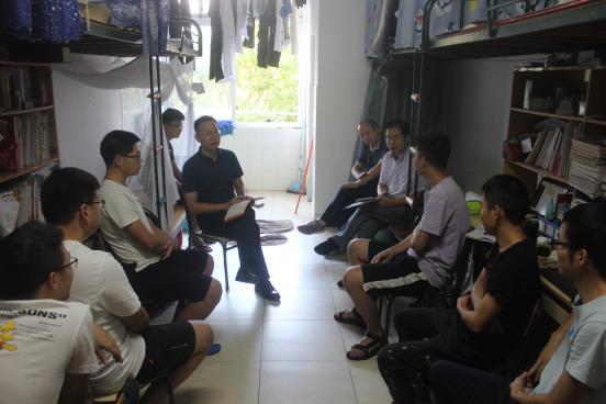 为了深入了解我院大学生的学习生活情况,推进我院“不忘初心、牢记使命”主题教育朝着及时解决问题、更好服务学生方向前进。9月20日下午2:30,学院党委书记鲁辉深入学生寝室13栋及4栋进行调研。此次访谈主要对象为大二、大三的同学。学工办主任谢巧燕、就业专干许乐群随行参加了调研。