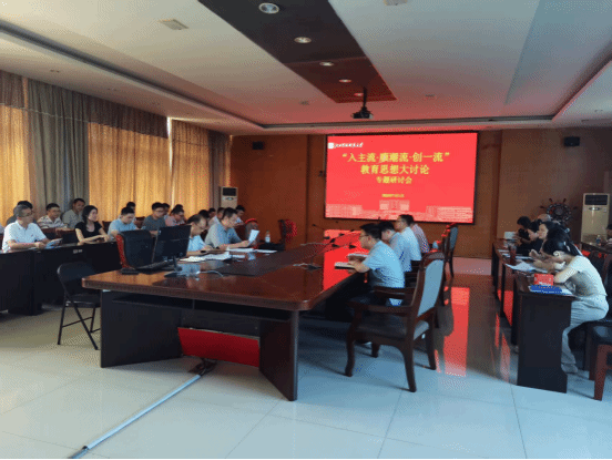 7月1日下午,WilliamHill威廉希尔官网在枫林校区行政楼501会议室召开“入主流·顺潮流·创一流”教育思想大讨论专题研讨会,学院领导班子和全体教职工参加,会议由学院党委书记申亮主持。