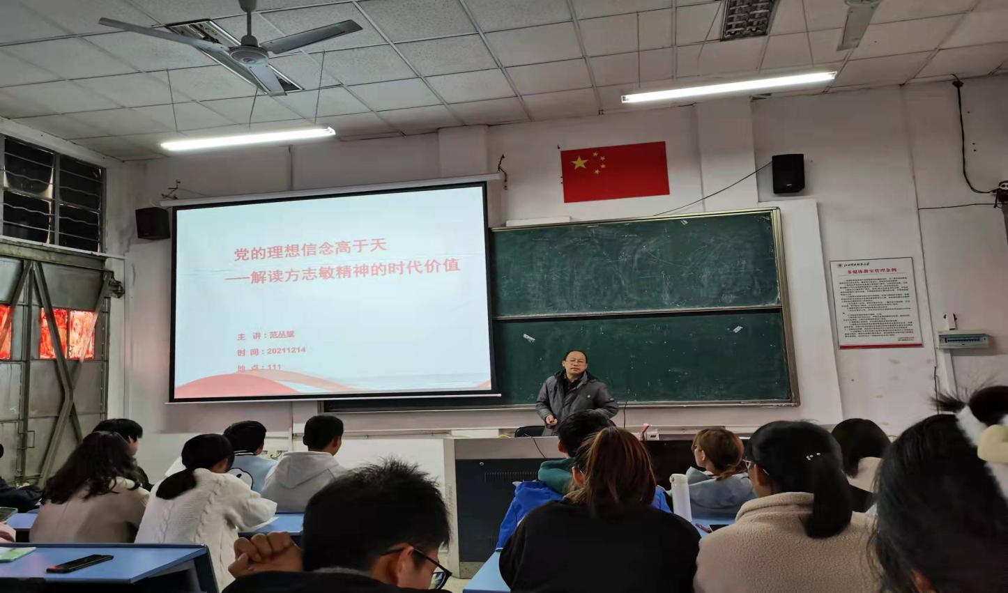 为推动我院入党积极分子进一步深入学习方志敏精神的时代价值和井冈山精神,丰富党的基本理论知识,进一步培养爱国爱党情怀,2021年12月14日下午4点在枫林校区理工楼111教室,学院副院长范丛斌同志为我院入党积极分子讲授党课。本次党课以《党的理想信念高于天》为主题,对方志敏精神的时代价值以及井冈山精神进行了深入的阐述。