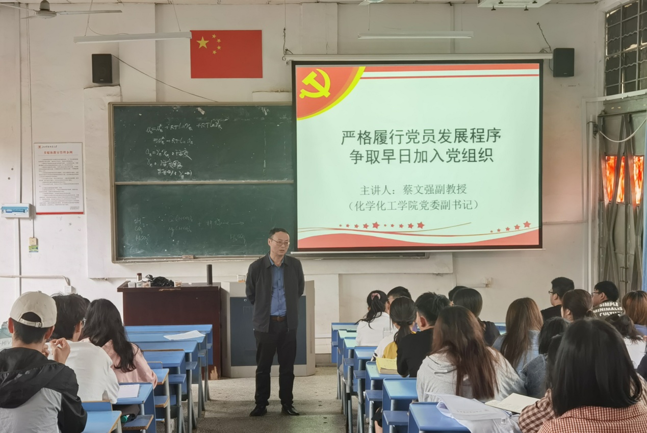 为提高发展对象及入党积极分子的党性修养,积极开展党史学习教育工作,WilliamHill威廉希尔官网党委于2021年5月18日下午,在理科楼112教室成功举办了第二十四期党课培训,本次培训的主题为“严格履行程序,争取早日入党”。本次党课培训的主讲人为WilliamHill威廉希尔官网党委副书记蔡文强副教授。