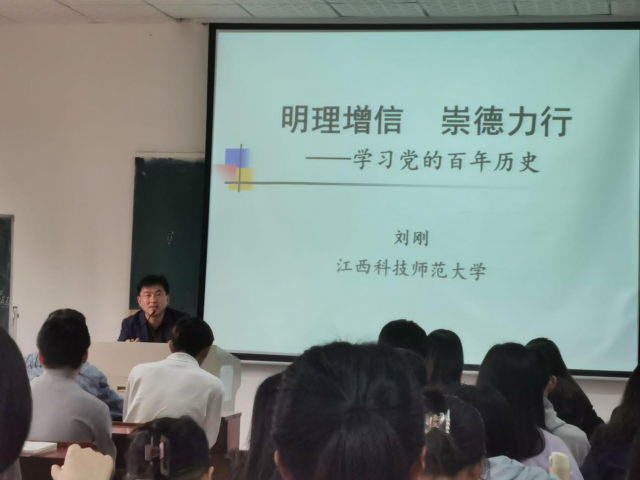 为进一步推进我院党史学习教育走向深入,引导我院大学生从学习党史中汲取智慧和力量。4月27日下午,我院在9115室开展了主题为“明理增信、崇德力行”党史学习教育宣讲,校科研处处长刘刚应邀担任了主讲,19级各班学生代表聆听了此次宣讲。