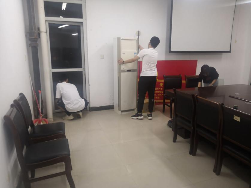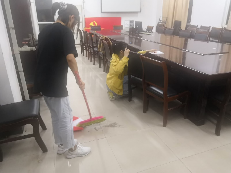 同学们对会议室的墙根、地面、灯管、门窗、风扇及卫生死角进行了全面彻底的清扫。通过大家的努力,会议室焕然一新,党员和入党积极分子们积极的态度和显著的劳动成果也受到带队老师们的一致好评。