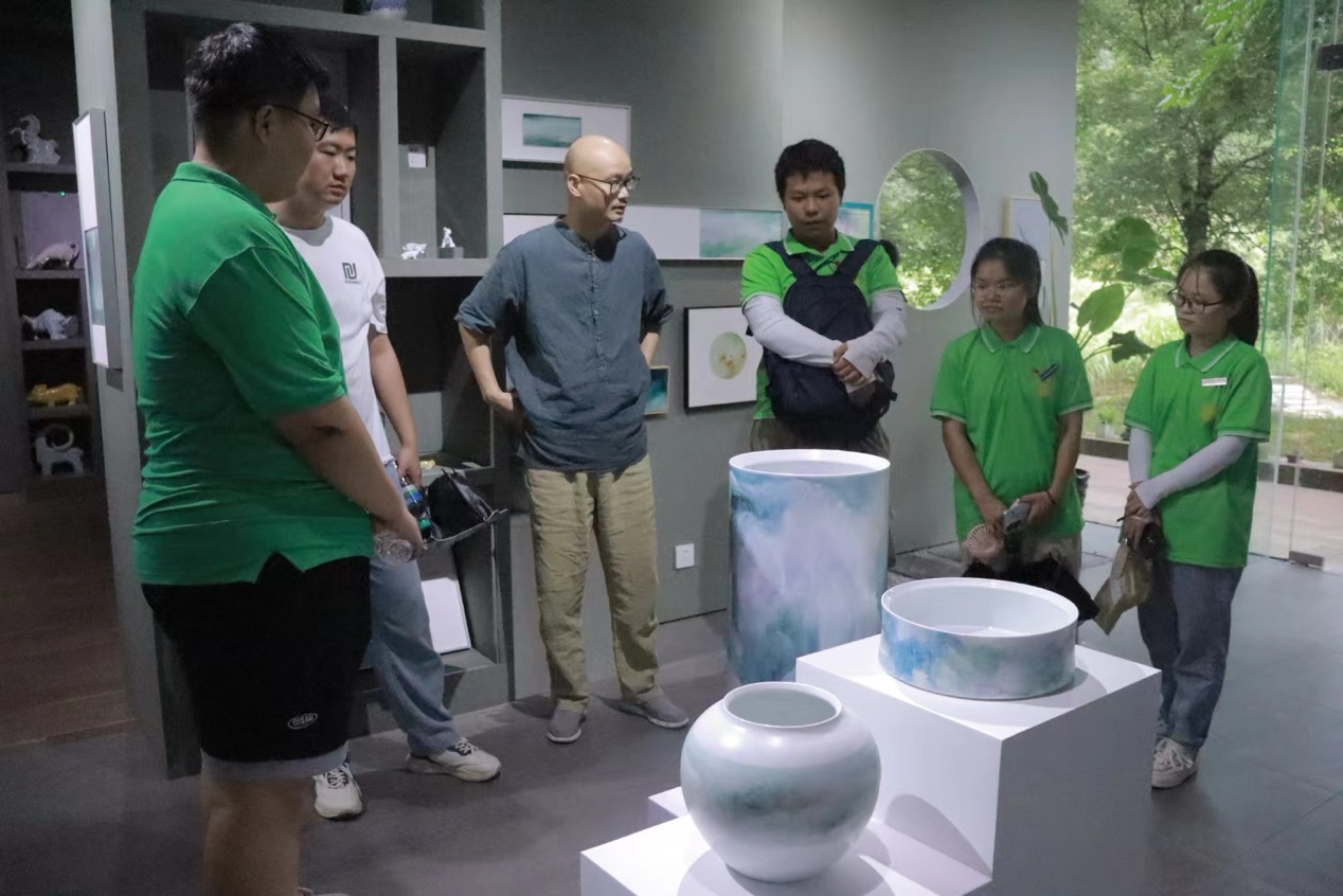 7月11日上午,社会实践团的成员们来到中国文联文艺两新集聚区景德镇实践基地感受陶瓷发展脉络。陶溪川青白瓷博物馆展出了两宋时期的景德镇窑青白瓷,实践团通过近距离观看,领略青白瓷“白如玉、明如镜、薄如纸、声如磬”这一传统艺术形式的独特魅力,感受到了宋元景德镇窑工匠精妙绝伦的制瓷技艺。