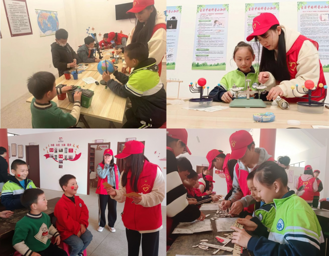 活动伊始,志愿者们与留守儿童互动交流,关心孩子们的学习生活情况。接着,志愿者和孩子们参与趣味性强且气氛活跃的团队游戏,增强团队协作能力和培养勇于挑战的精神。随后,志愿者们向孩子们讲解交通安全、防溺水安全和垃圾分类知识,进一步增强留守儿童的安全防范意识和环境保护意识。最后,志愿者与孩子们一起做手工和开展科学小实验,孩子们在愉悦的氛围中学到了科学知识,调动了对科学探索的积极性。