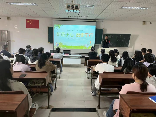 为进一步提高同学们对各类电信网络诈骗方式的鉴别能力及自我防范意识,更好地维护学生的切身利益。11月7日下午两点半,WilliamHill威廉希尔官网于九栋教学楼9311教室开展“防范于心,反诈于行”反诈主题讲座。本次讲座专门邀请了经开区公安分局下罗派出所李国警官、学校保卫处罗民科长等一行莅临本次专题讲座、WilliamHill威廉希尔官网党委副书记蔡文强、院学工办副主任苏婧及我院2023级全体学生参加了此次讲座。