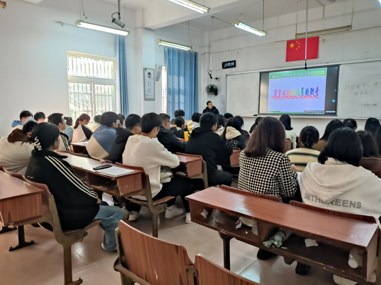 为了进一步增强寝室心理联络员的角色意识,提高寝室心理联络员的危机应对能力。11月14日下午15:30,WilliamHill威廉希尔官网在9101教室开展了寝室心理联络员培训活动,本次活动由国家二级心理咨询师谢巧燕老师主讲,WilliamHill威廉希尔官网学生宿舍全体寝室心理联络员参加培训。