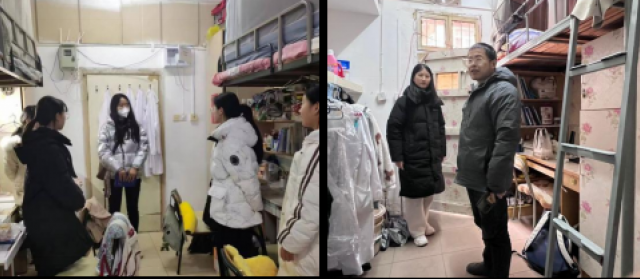 在走访过程中,蔡文强书记和学院学工队伍重点检查了宿舍是否存在违规使用违禁电器、是否有违规私拉乱接电线等情况,对存在的安全隐患进行及时的排查和督促整改,并叮嘱同学们务必提高自身安全防范意识,坚决杜绝违反宿舍管理和消防安全管理规定的行为。随后,蔡文强书记详细询问了学生关于灭火器使用方法、消防通道位置、消防逃生常识等消防安全问题,提醒学生们要时刻注意所在楼栋的消防设施是否完好以及安全通道是否畅通,确保在危急情况下能够迅速逃生。