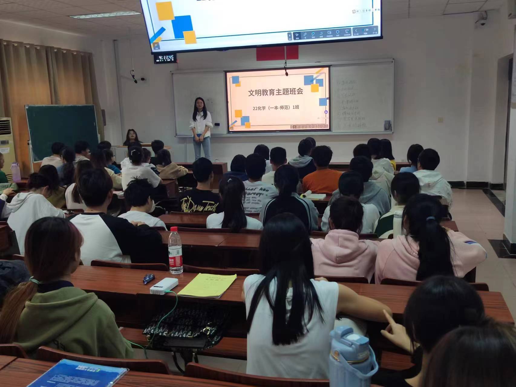 全院各班围绕尊敬师长、课堂文明、宿舍文明、举止文明等召开了主题班会,各班主任以寓教于乐的方式,唤醒同学们的文明意识;通过在学院公众号,宣传学院优秀教师、优秀校友,充分发挥榜样力量,通过“红帽子”宣讲,向同学们展示向真、向善、向美、向上的校园文化。同学们在一次次教育中提升自我,纷纷表示,作为新时代的大学生,要做到语言讲文雅、行为讲高尚、校园讲秩序、交往讲风尚、处事讲诚信。