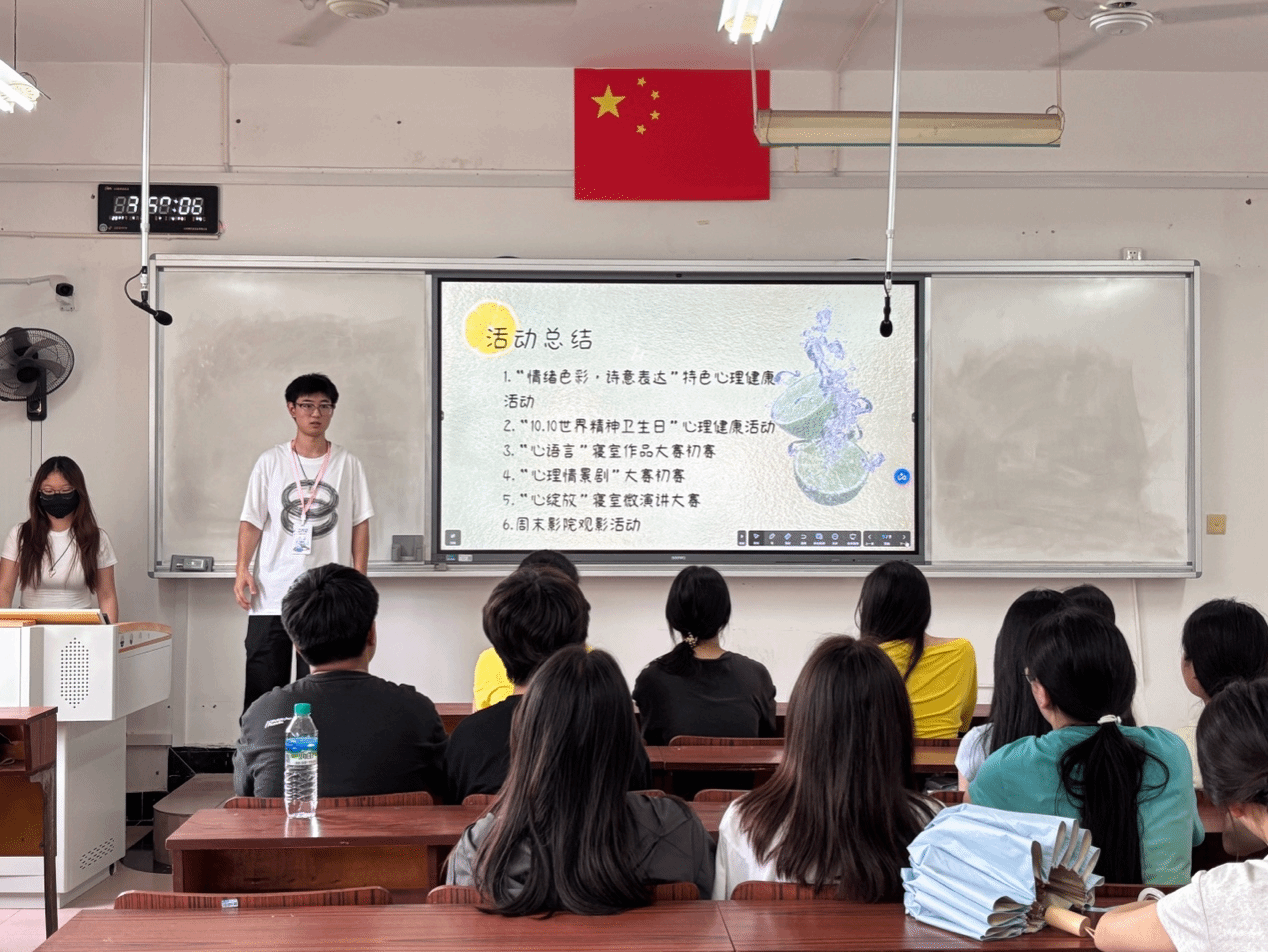 会议首先回顾了近期开展的系列心理健康活动。三、四月“周末影院”活动分别放映了《星际穿越》与《长空之王》,通过观影引导同学们探索自我成长与团队协作精神;三月举办“3.25善爱自己,拾光前行”主题活动及读书分享会,进一步普及了心理健康知识,营造积极向上的校园氛围。