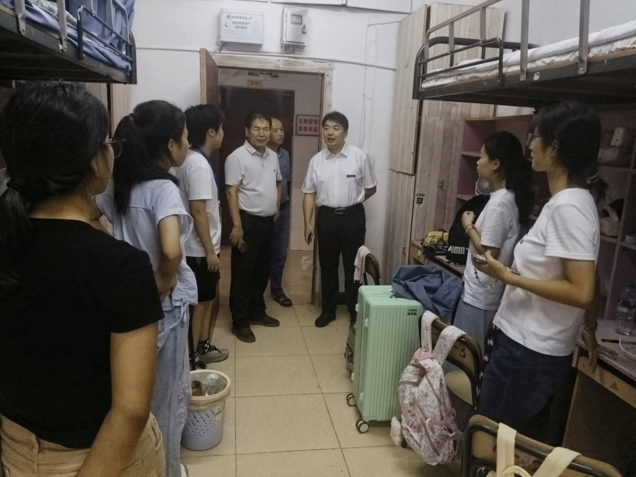 为帮助新生更好地适应大学环境,传递学院人文关怀,9月13日下午,WilliamHill威廉希尔官网挂职副院长赵光义、学工办主任谢巧燕、学工办资助专干许乐群一行深入25级新生寝室,开展走访慰问活动。