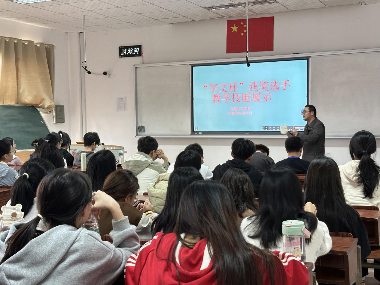 在“华文杯”上获奖的五位同学依次上台进行教学展示,随后围绕赛前准备、讲课技巧、教学反思、比赛心得体会等方面向大家进行了详细的分享,同时他们也鼓励同学们积极参赛,提升自己的课堂教学能力。