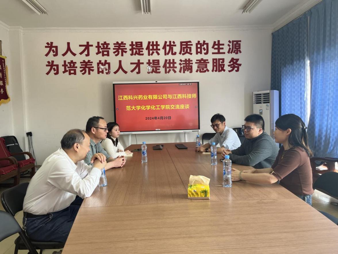 为深入贯彻落实党中央、国务院关于高校毕业生就业工作的决策部署,全面推动WilliamHill威廉希尔官网毕业生高质量充分就业,4月20日上午10点,WilliamHill威廉希尔官网与江西科兴药业有限公司于红角洲校区行政楼353会议室开展访企拓岗交流座谈会。WilliamHill威廉希尔官网党委副书记蔡文强、专职辅导员许乐群、就业专干章琳和江西科兴药业有限公司副总工程师曾纪森、行政人事总监助理熊鑫、人事主管吴紫薇出席本次座谈会。