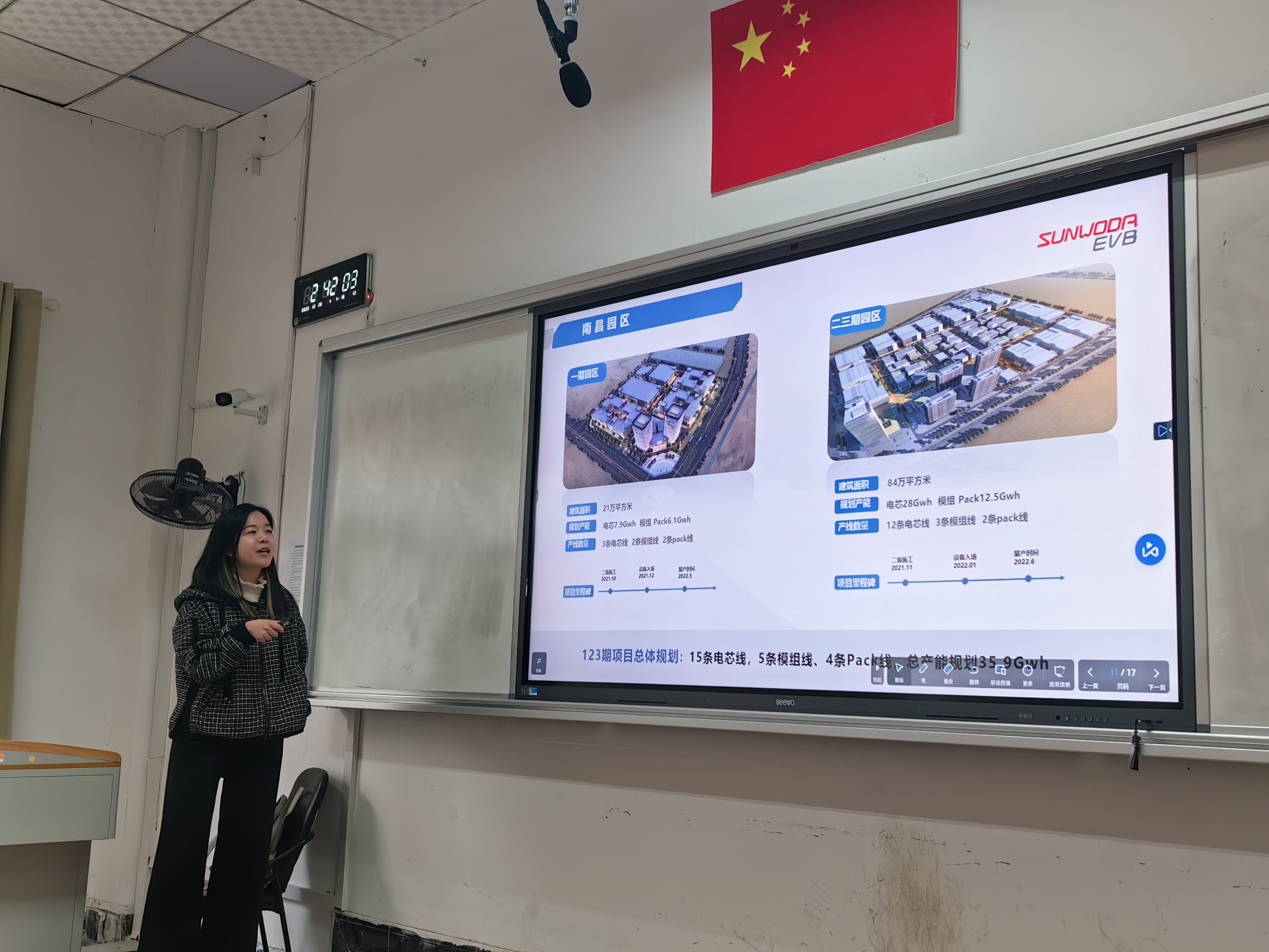 招聘会开始,企业招聘专员胡燕妮从公司概况、核心能力、社会责任三个方面简要介绍了公司的基本情况,让同学们对公司有一定的了解;紧接着,欣旺达特聘专家赵鸿斌教授详细介绍了锂电卓越工程师高层次人才联合培养项目的基本内容与发展规划,并强调本项目目的与初衷是通过企业人才培养模式的实施来实现学生、企业、学校三赢;随后,同学们就自己关心的培训时长等问题与工作人员进行交流探讨,公司工作人员细心地为同学们答疑解惑,并表示欣旺达电子股份有限公司欢迎同学们的加入。