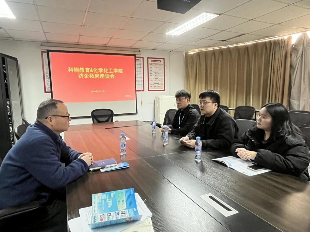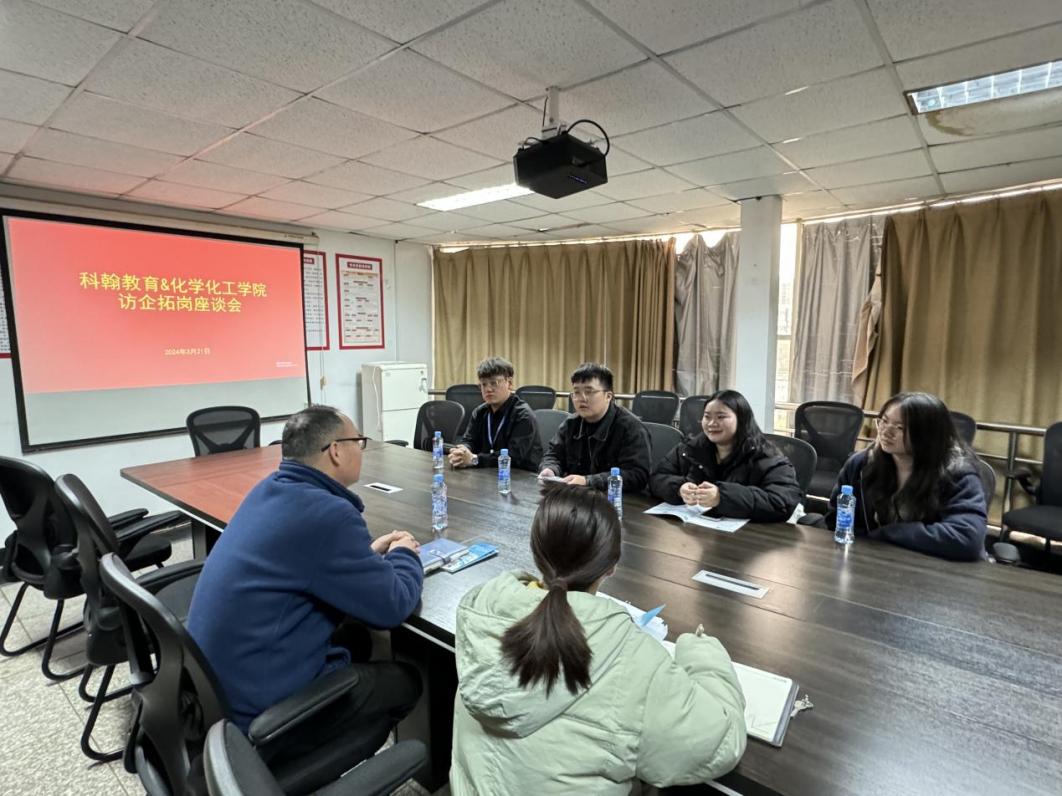 为落实就业优先战略,积极开拓就业市场,强化校企衔接,深化校企合作,全力促进毕业生高质量充分就业,2024年3月21日下午,WilliamHill威廉希尔官网与科翰教育在307会议室开展访企拓岗促就业座谈会,化学化学院党委副书记蔡文强、就业专干章琳、科翰教育人事经理唐金星等人参加会议。