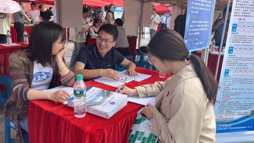 双选会气氛热烈,毕业生和用人单位积极互动。用人单位通过发放宣传材料、现场展示以及面对面介绍等形式,向毕业生介绍用工需求和工作待遇,吸引毕业生加入,毕业生们也结合自身实际,在多方了解企业信息后,向心仪的单位投递个人简历。现场还吸引了部分低年级学生前来感受就业氛围。
