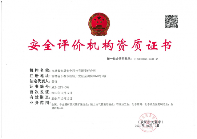 经过三年的发展,公司资产规模不断扩大,经济效益快速增长,综合实力不断增强,已经形成了适合公司自身运营和良性发展的战略架构体系,为安晟事业发展发挥了重要作用。按国家应急管理部1号令《安全评价检测检验机构管理办法》进行建立和完善,为吉林省安全工作尽一份力。安全评价范围有:金属、非金属矿及其他矿釆选业;陆上油气管道运输业;石油加工业、化学原料、化学品及医药制造业;金属冶炼,为实现吉林省安全评价工作提供有力支撑。