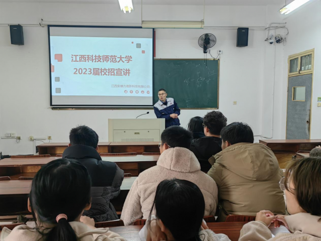 在做了充足的前期准备情况下,活动顺利展开。招聘宣讲会上,招聘单位人事专员傅希通过PPT向同学们展示了公司的基本情况,介绍了公司的发展过程,让同学们对其发展现状有所了解。紧接着介绍了公司的环境、生活条件,以及公司的日后规划,给予将被录用人员工作和生活上的保障。最后,讲述了公司的人才需求,本次招聘岗位主要为化学分析员、实验员以及生产技术员,欢迎大家踊跃报名。介绍完成后,同学们积极提问工作有关问题,如工作时长及公休等方面问题,宣讲人员也热情地为同学们答疑解惑,氛围十分融洽。此次招聘会圆满结束。