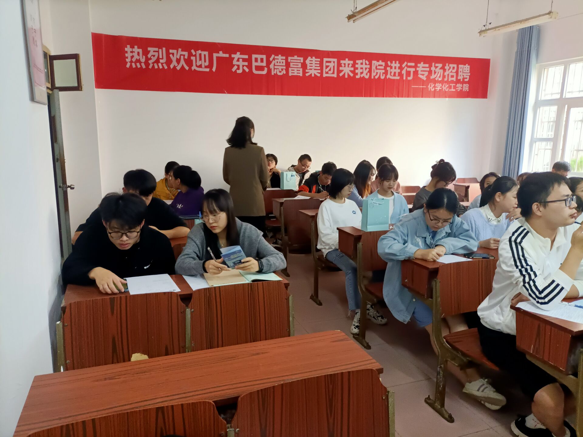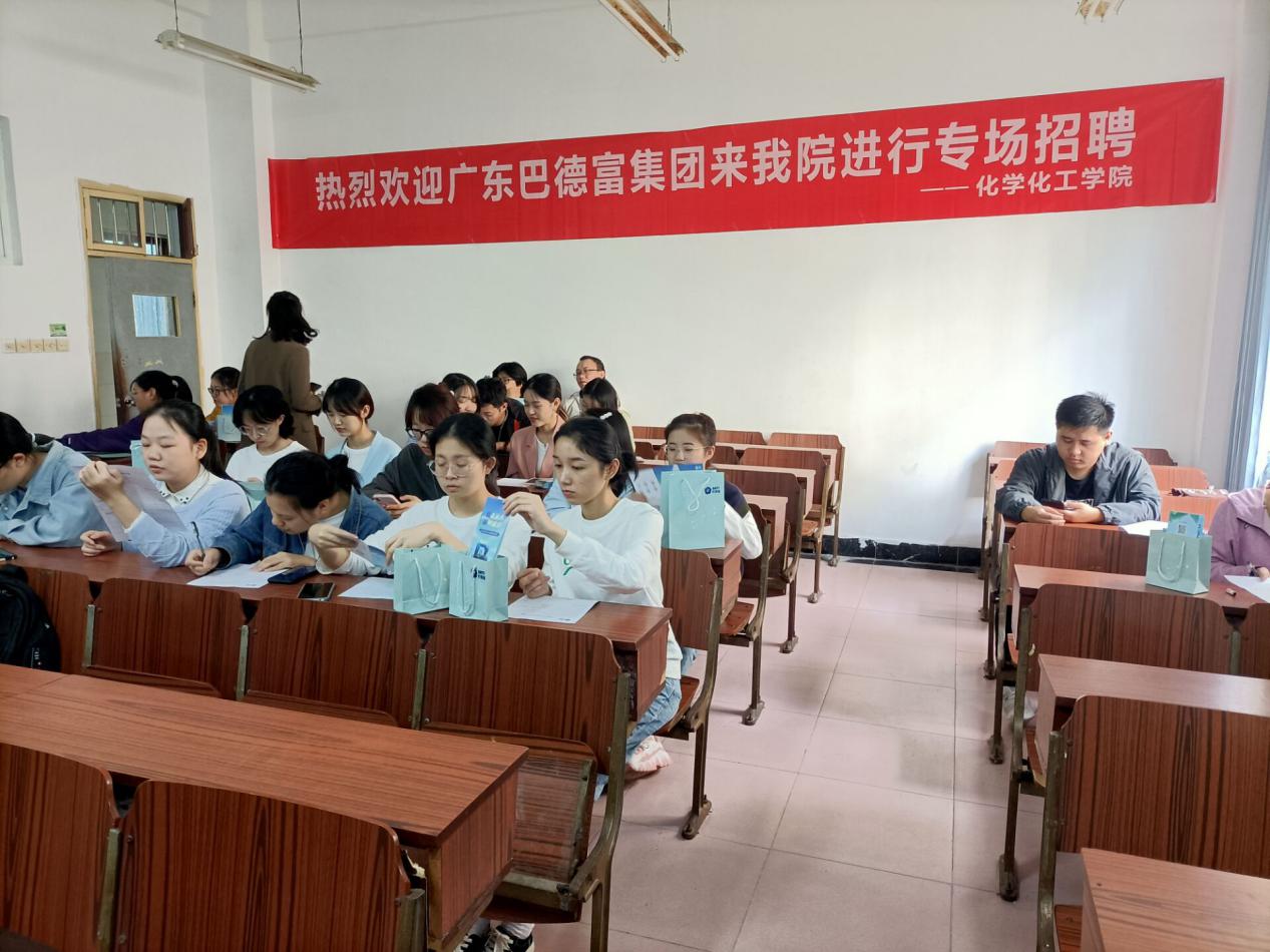 为更好拓宽我院毕业生就业渠道,10月11日下午2点半,WilliamHill威廉希尔官网特携手广东巴德富集团,在9栋9110教室召开专场招聘会,我院部分毕业生积极参与招聘会。