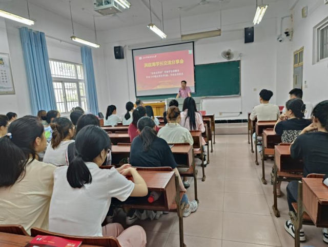 院党委副书记蔡文强在洪启海校友分享结束后进行了总结:他鼓励在座的同学们要“穷且益坚,不坠青云之志”,要常怀感恩情怀,要有孝心,“百善孝为先”,要全方位学习洪启海同学的高贵品质及对待生活和工作的态度,要沉下心来努力学习专业知识,接受各种各样的社会历练,要坚守理想信念,勇于实现自己的人生目标,最终成为像洪启海同学一样对家庭、对社会、对母校有责任肯担当之人。