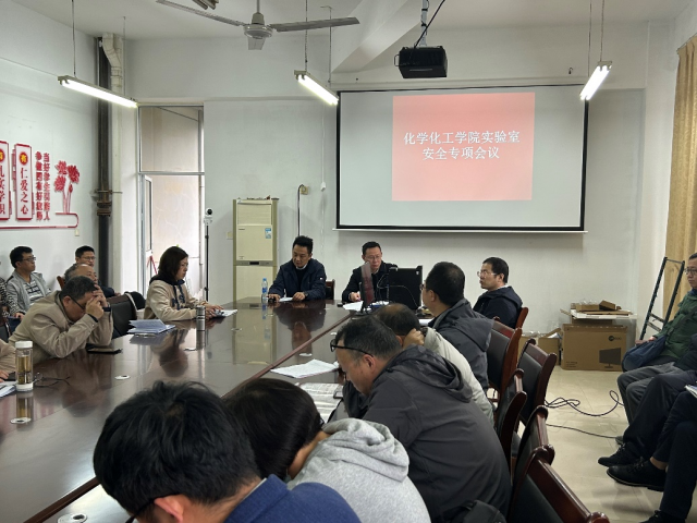 按《教育部办公厅关于组织开展2023年度高等学校实验室安全检查工作的通知》文件及学校关于《实验室安全检查工作实施方案》相关要求,我院基础化学实验中心于4月25日下午组织召开全院实验室安全专项工作会议,认真学习,贯彻落实。会议要求各实验室严格执行《高等学校实验室安全规范》,并对照《高等学校实验室安全检查项目表(2023年)》逐条落实安全管理,先期完成开展自查自纠工作。
