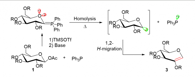 图一 葡萄糖基磷叶立德裂解合成烯糖过程