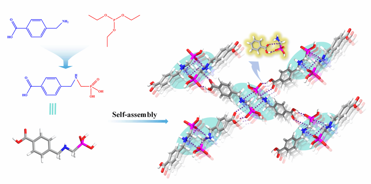 图一 P-HOF合成路径示意图及其相邻分子间氢键类型